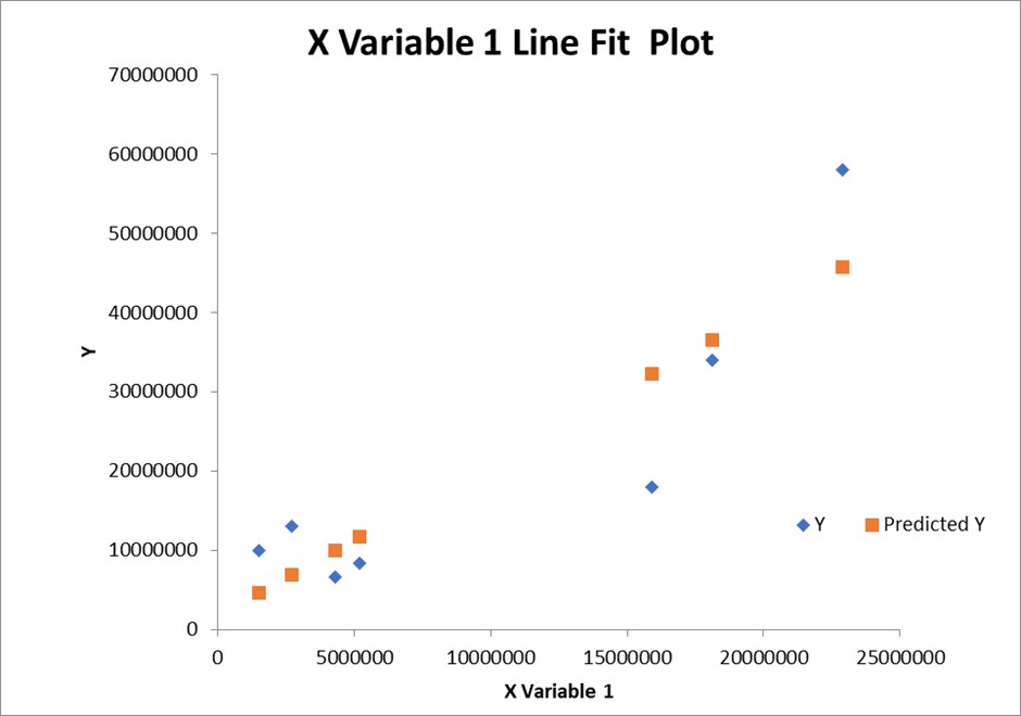 Line Fit Plot, the sequence of the best fit plot suggests the predicted value near the actual values. The graph represents the relationship between the two variables based on the data distribution in the chart. Probability is found in focusing on the mean in the data set.
